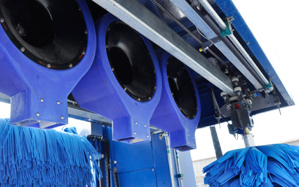 進口意大利塑玻絲輪刷,根據(jù)光電開關(guān)感應(yīng)判斷車身位置,輪刷啟動至輪轂位置,開始清洗,正反旋轉(zhuǎn)刷洗輪轂,電腦洗車機全程電腦全自動控制輪刷伸縮。